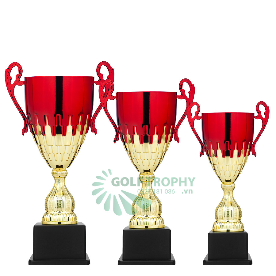 – Cúp kim loại cao cấp màu vàng - đỏ