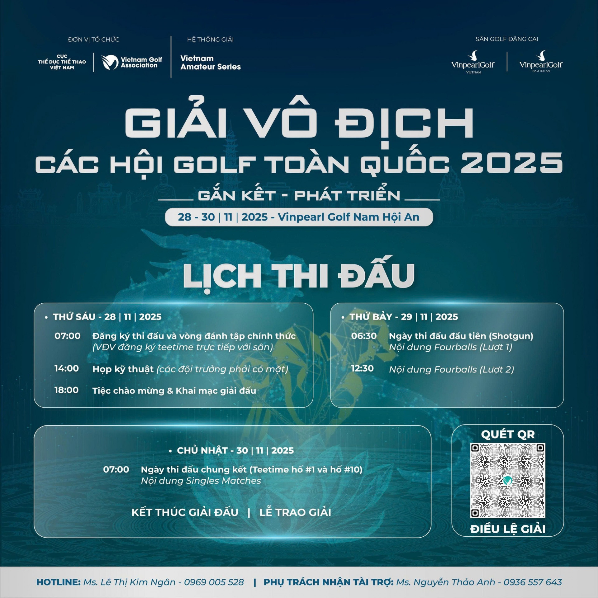Nối tiếp thành công của mùa giải 2024 tại Vinpearl Golf Hải Phòng, Giải Vô địch các Hội Golf Toàn Quốc năm 2025 (VAC 2025) sẽ chính thức khởi tranh từ ngày 28 – 30/11/2025 tại Vinpearl Golf Nam Hội An.