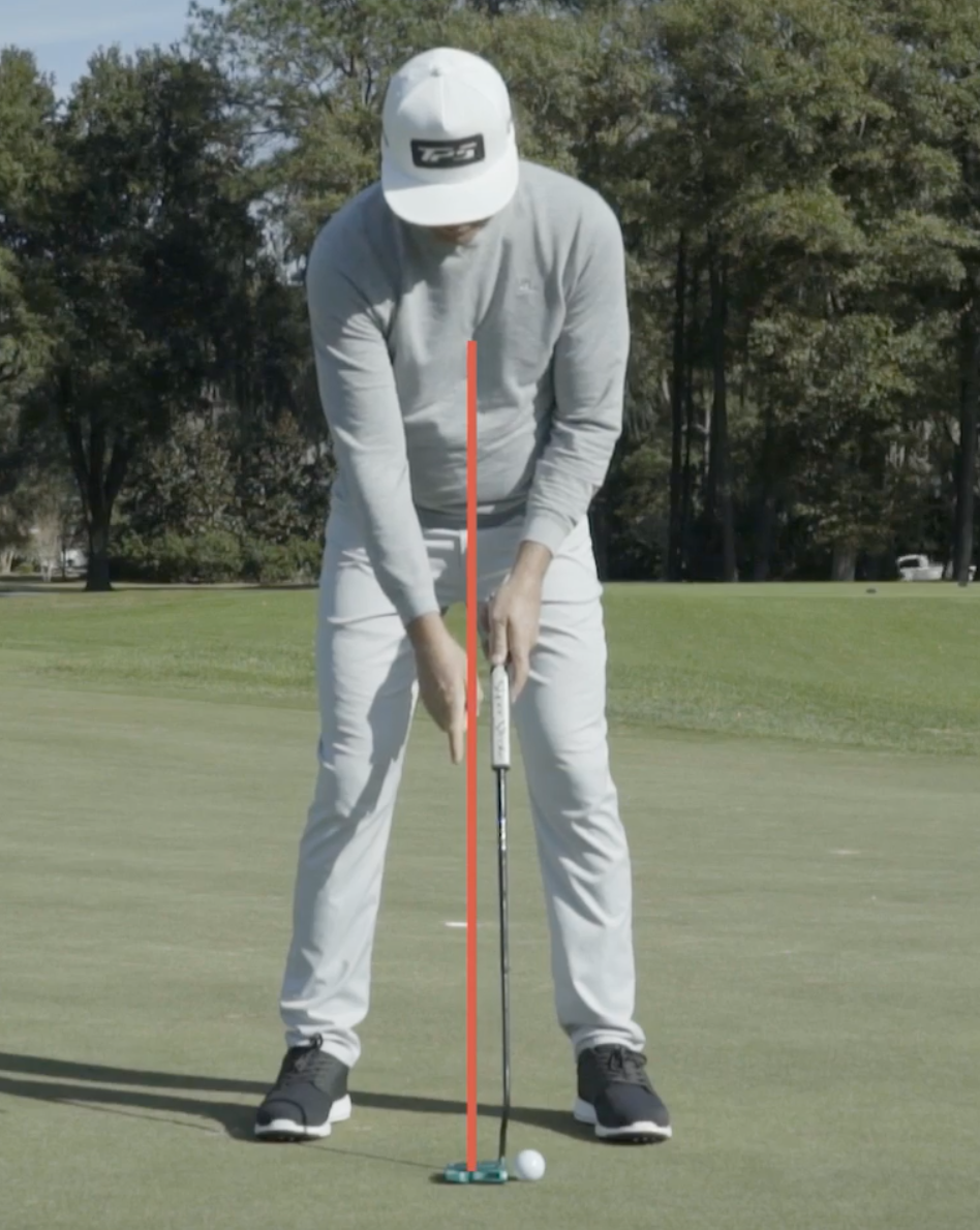 Đa số người chơi đều đặt bóng giữa khoảng cách hai chân khi putt. Nhưng theo chuyên gia, khi set up với ngực của bạn nằm ở giữa tư thế cân bằng, bóng nên được đặt hô lệch về phía chân trước. Điều này để đảm bảo mặt gậy tiếp xúc tốt hơn với bóng vì khi putt đầu gậy thường có thiên hướng đi lên trên.